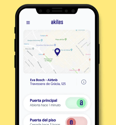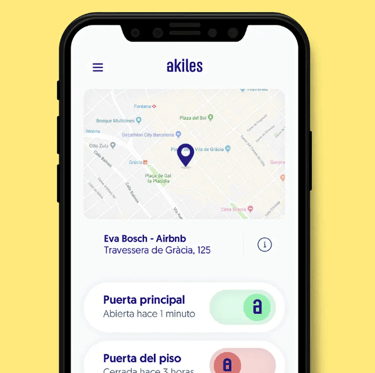 Adiós Llaves. Instalamos la cerradura inteligente Akiles para que tus huéspedes realicen el Check-in y Check-out de manera fácil y rápida.